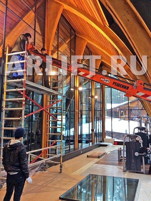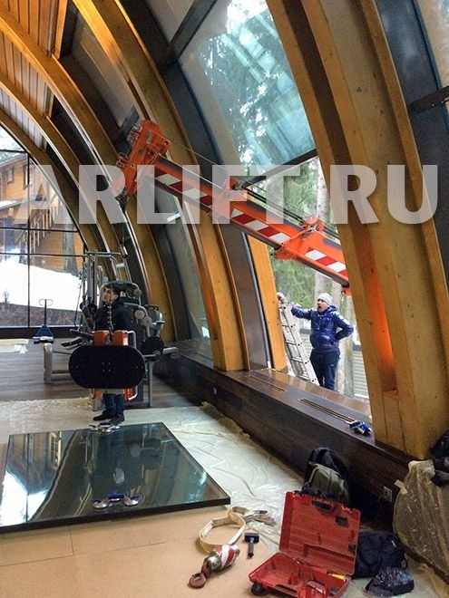 Монтаж 36 стеклопакетов с помощью мини-крана SPX1275 и вакуумных захватов Arlifter GS-850.