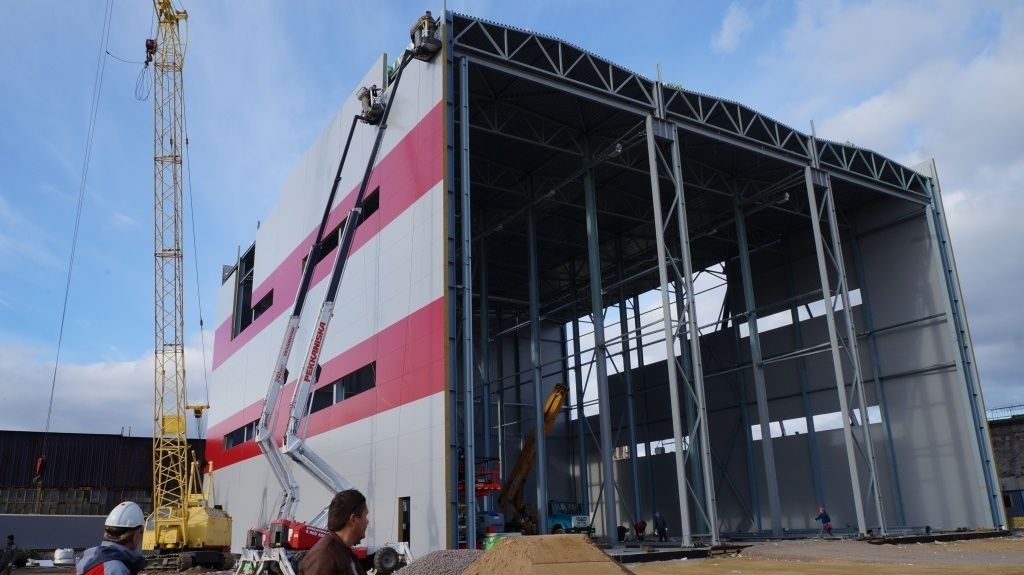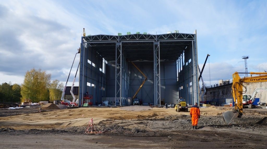 На объекте "Судостроительный Выборгский Завод"строительство ангара для хранения яхт.