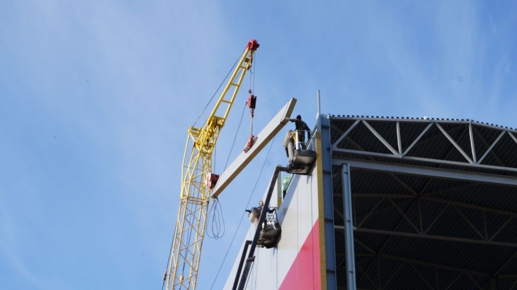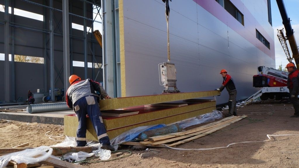 Облицовка ангара сэндвич-панелями.