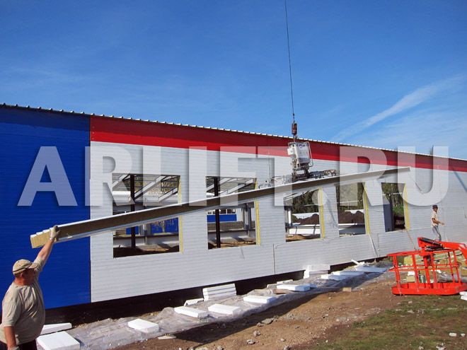 Монтаж редукторного завода - горизонтальный монтаж стеновых сэндвич-панелей