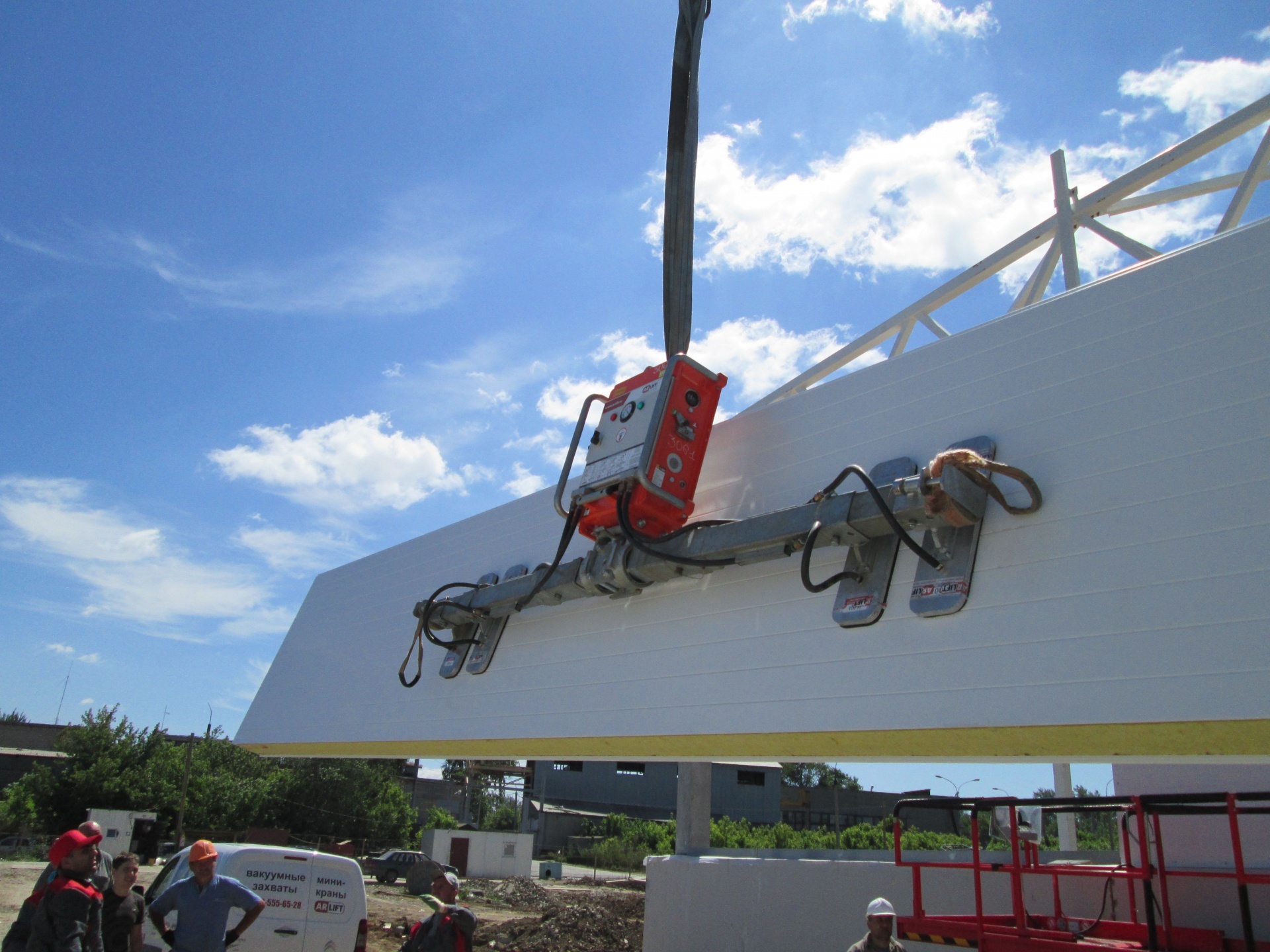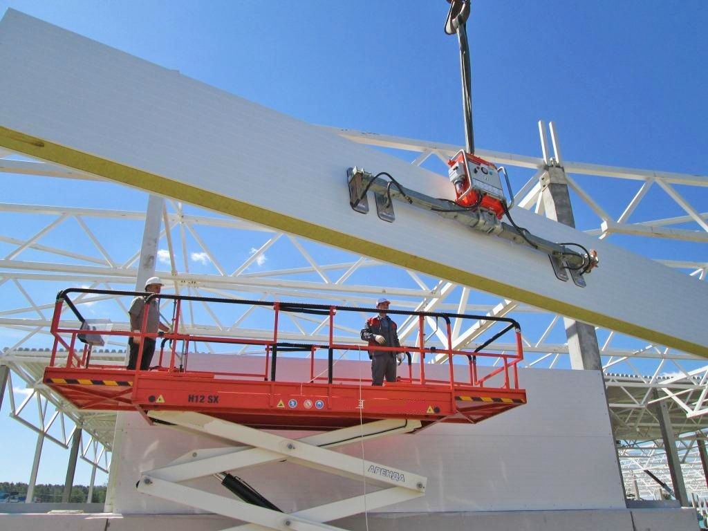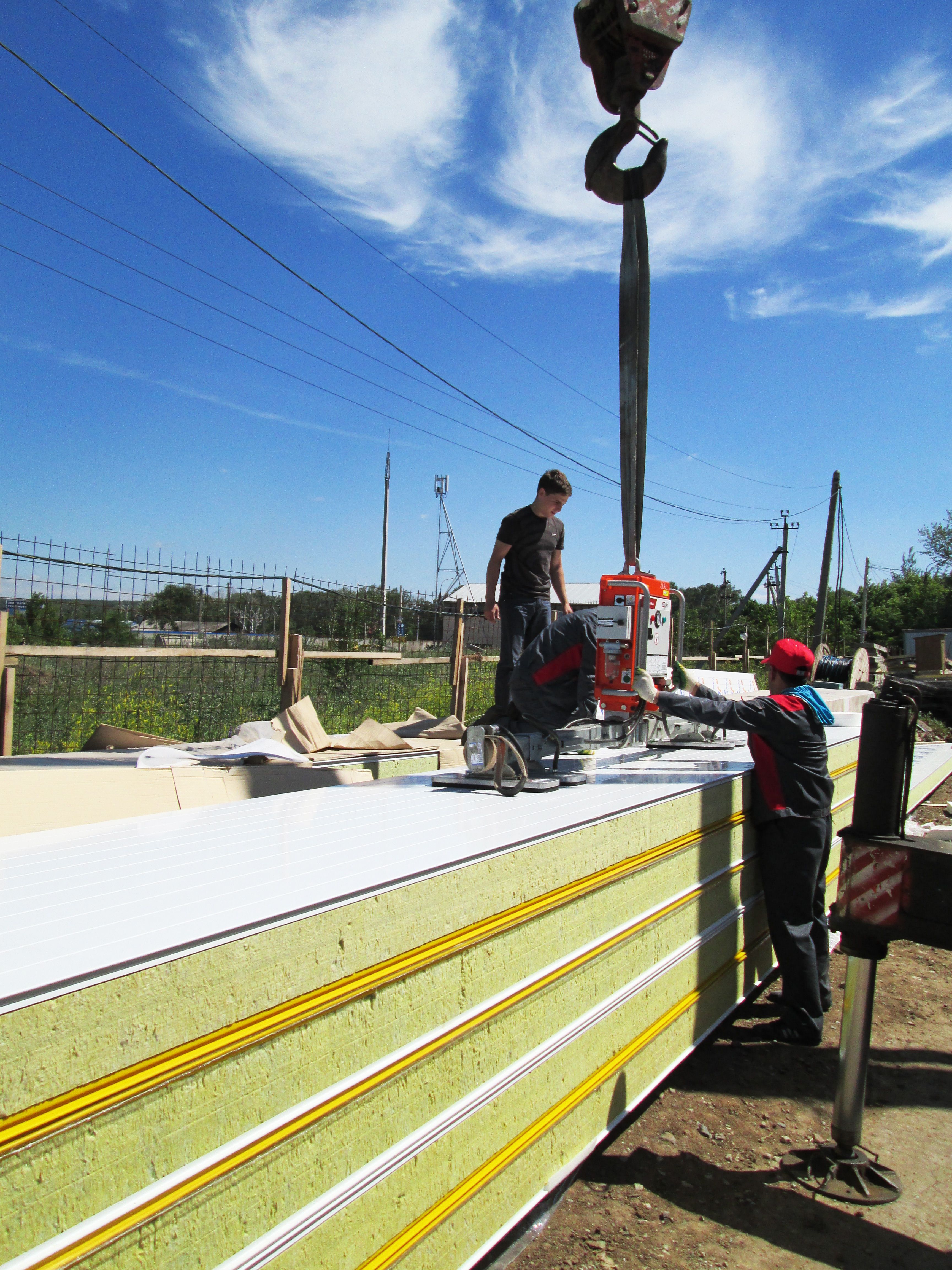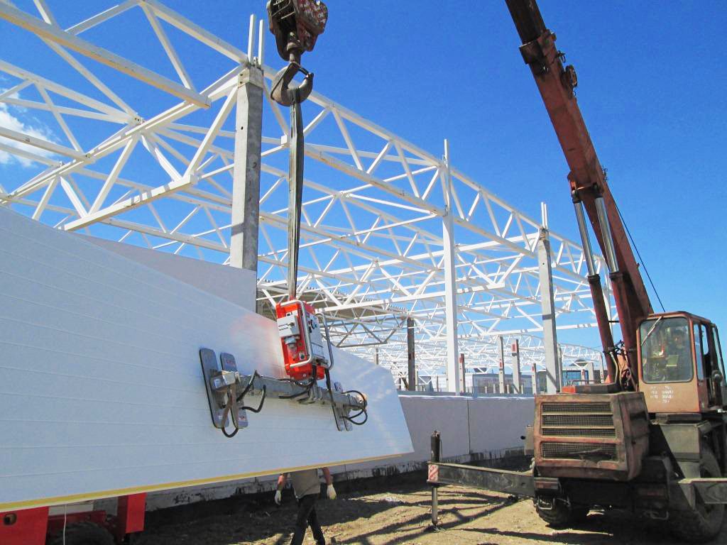 Горизонтальный монтаж сэндвич-панелей 9 метров, 340 кг.