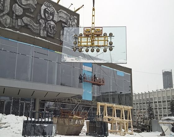 Монтаж стекол весом 300 килограммов выполнялся вакуумным захватом ARLIFTER GS-500.