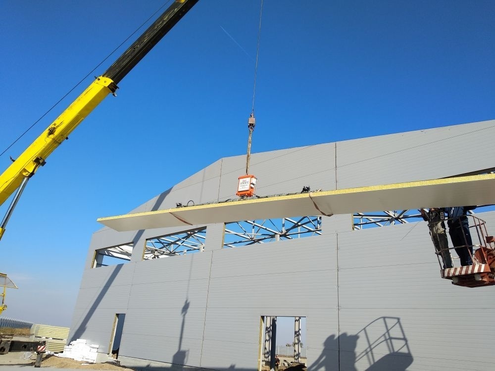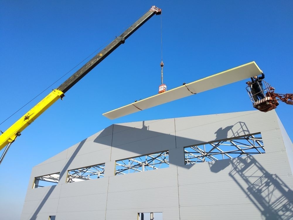Наше оборудование работало в новой части хутора. Нам требовалось выполнить монтаж 13-ти метровых сэндвич-панелей в рамках проекта по строительству центра разборки. Для этого был использован вакуумный захват ALRIFTER SPD-4.