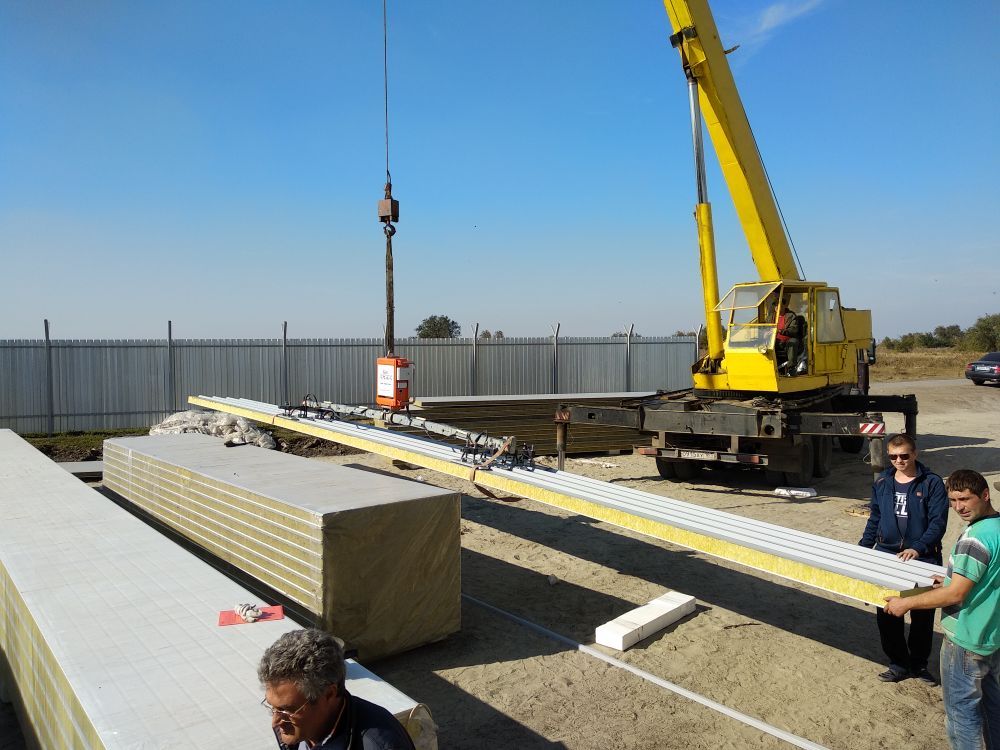 Монтаж сэндвич-панелей на территории центра разборки на Хуторе Ленина