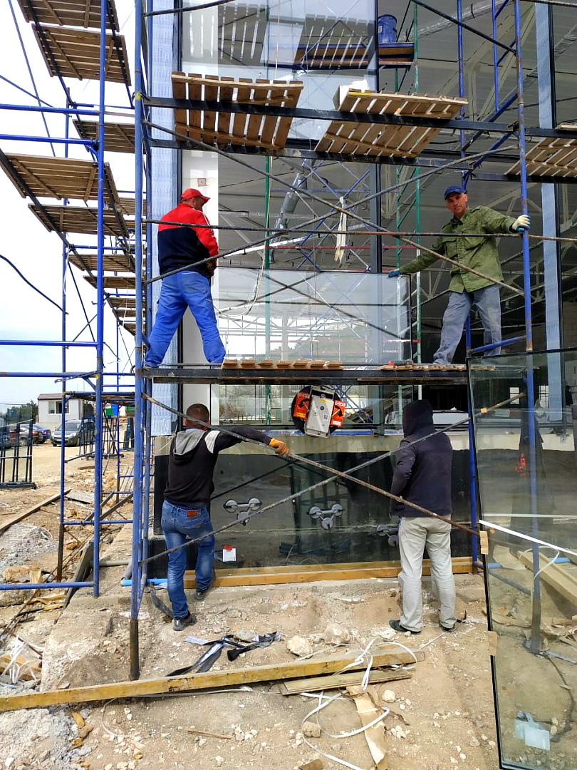 Стеклянные фасады довольно современное и популярное решение в нашей стране, особенно в тех местах, где солнце светит большую часть года. Так, при строительстве автосалона «Лада» активно применяли эти технологии.