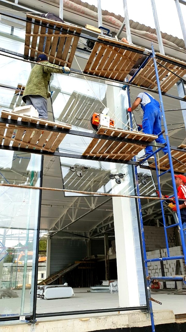 Для монтажа стеклопакетов использовался вакуумный захват ARLIFTER GS-350, который, по мнению строительных и монтажных организаций, считается самым удобным вакуумным оборудованием в своем классе.