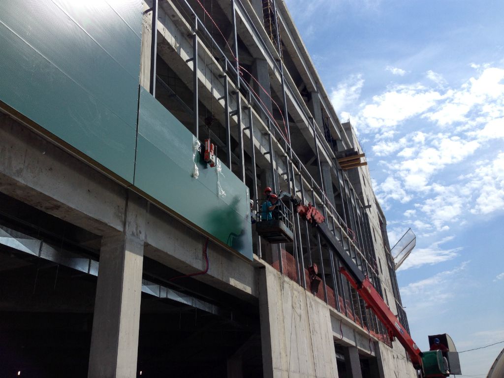 Монтаж горизонтальных стеновых сэндвич-панелей для ТЦ "Парк"
