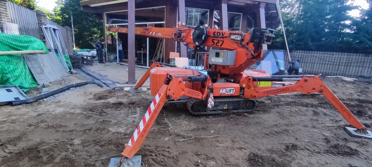 Работа мини-крана с гуськом и вакуумным захватом Арлифт