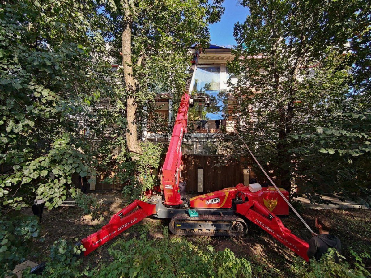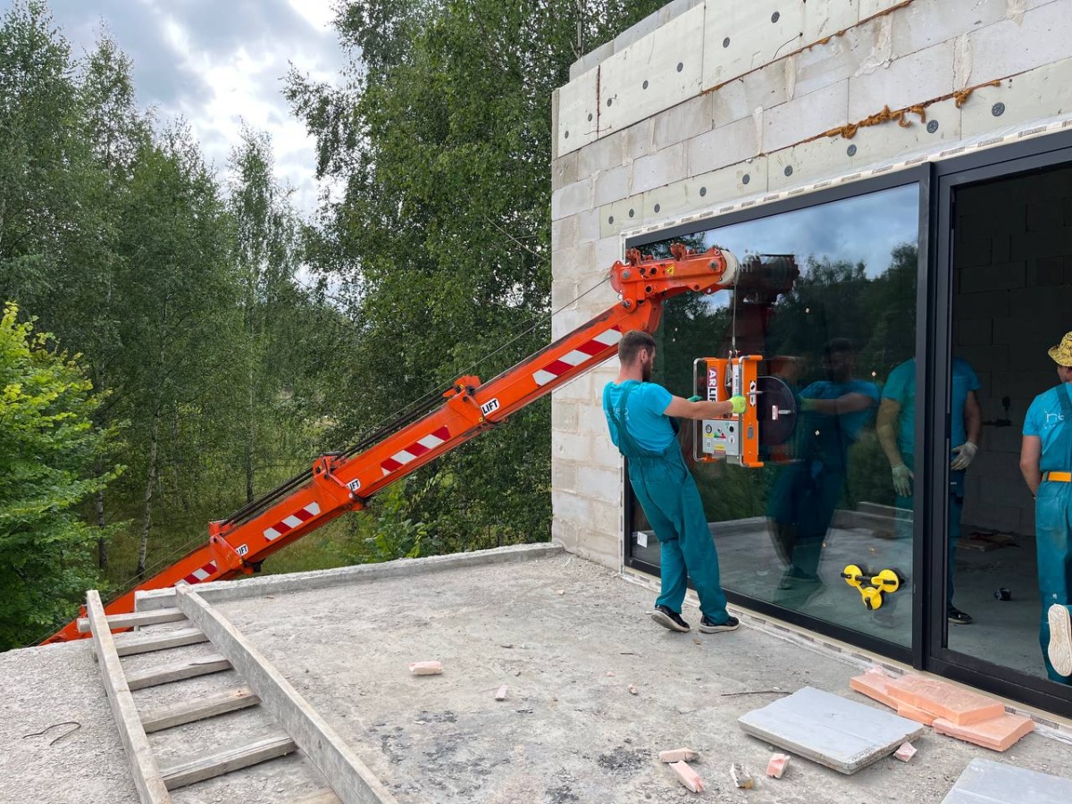 Остекление с помощью двух вакуумных захватов Арлифт и мини-крана