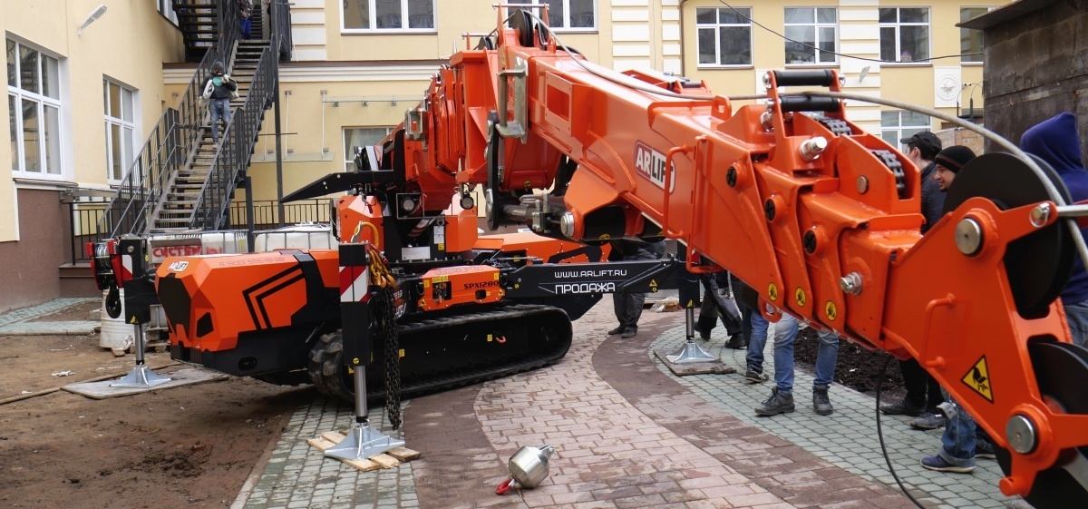 Монтаж металлоконструкций с помощью мини-крана Арлифт