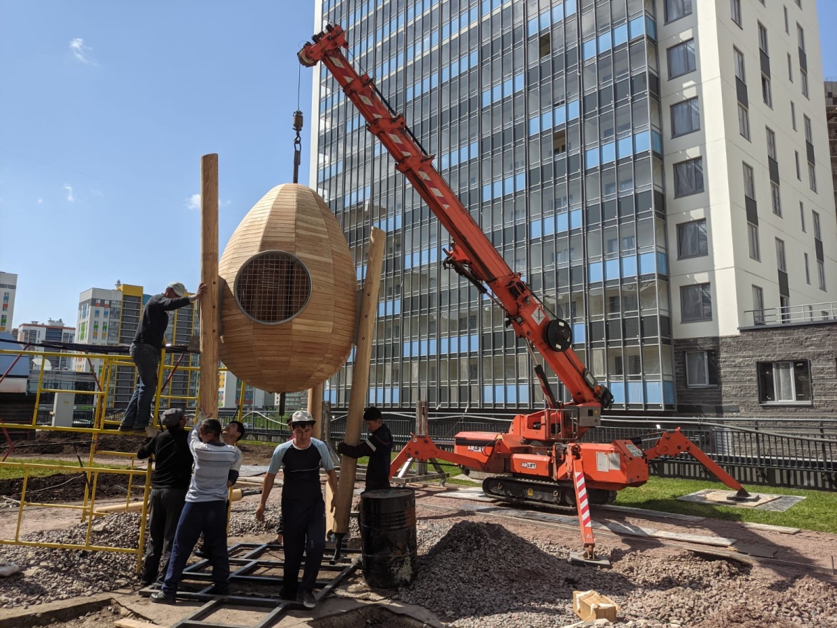 Монтаж под козырек с помощью мини-крана и вакуумного захвата Арлифт