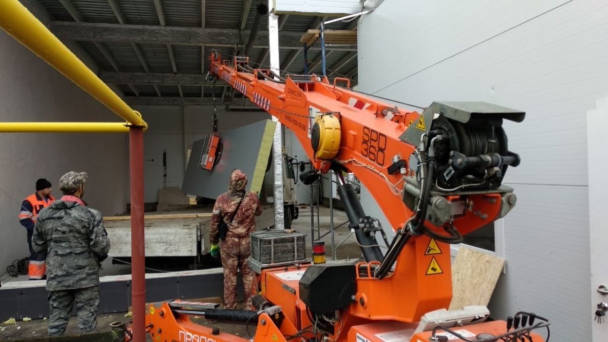 Монтаж навесного оборудования с помощью мини-крана