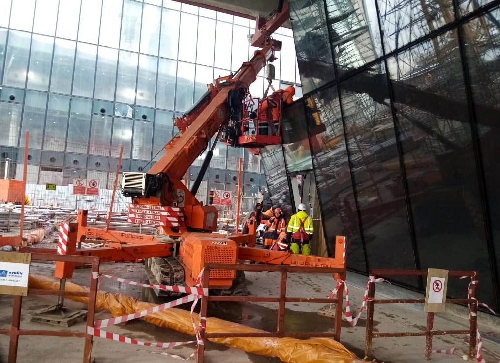 Оклейка фасада с помощью мини-кранов Арлифт и доп. оборудования