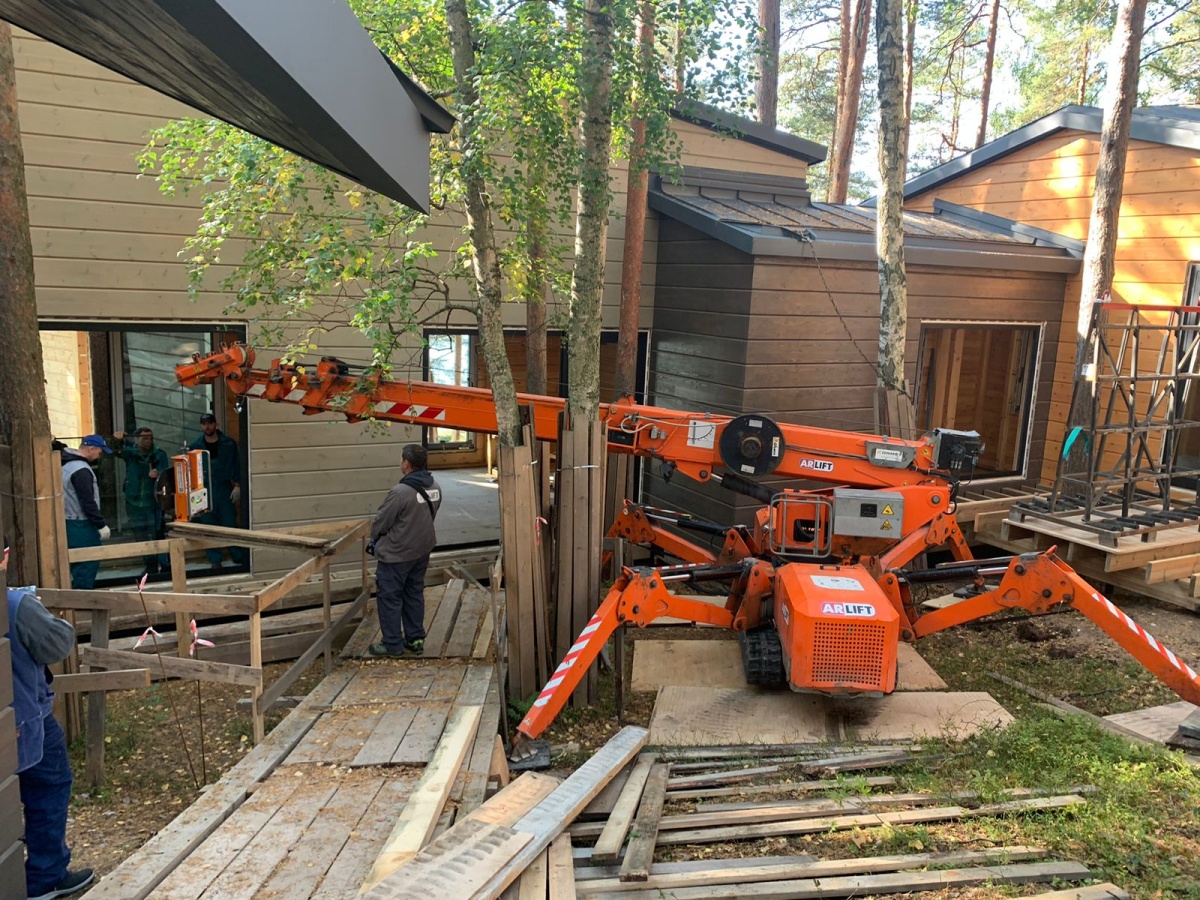 Остекление на неровной поверхности с помощью мини-крана Арлифт
