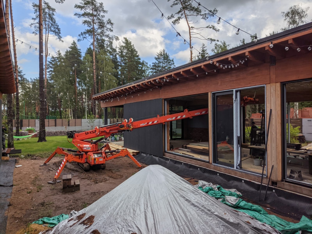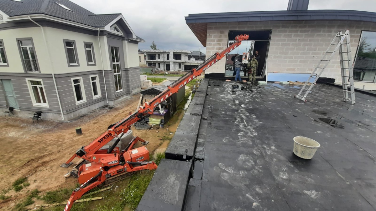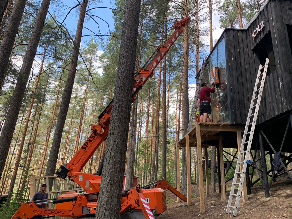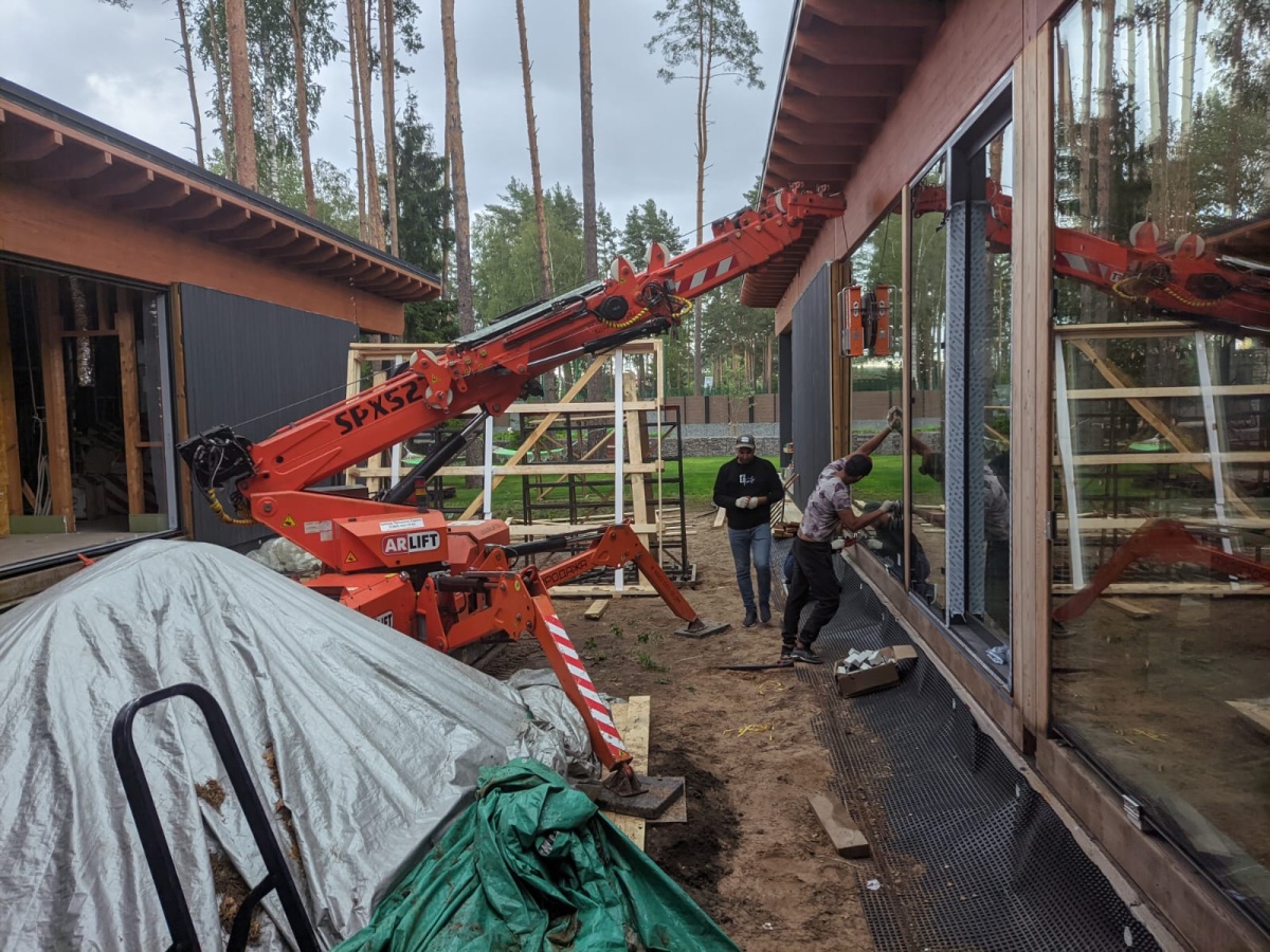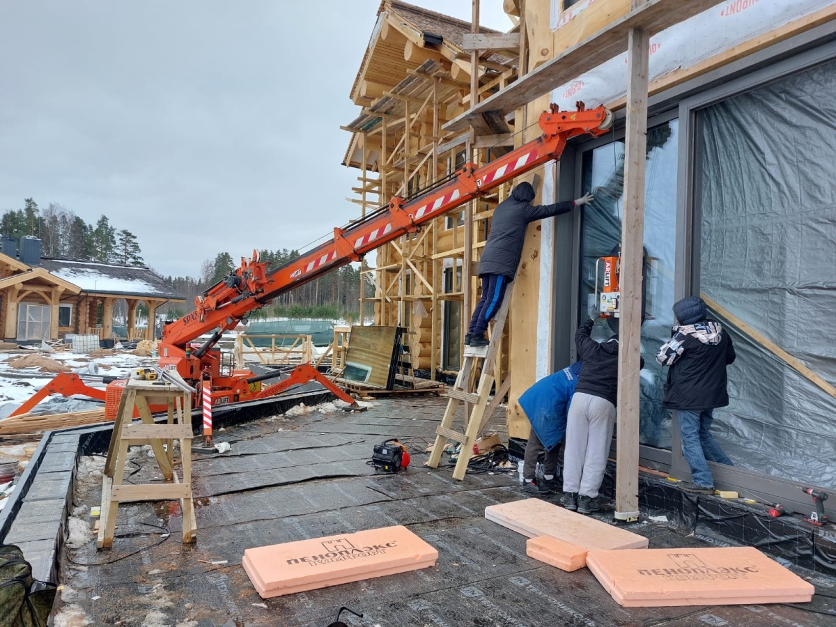 Остекление мини-краном и вакуумным захватом Арлфит под козырек