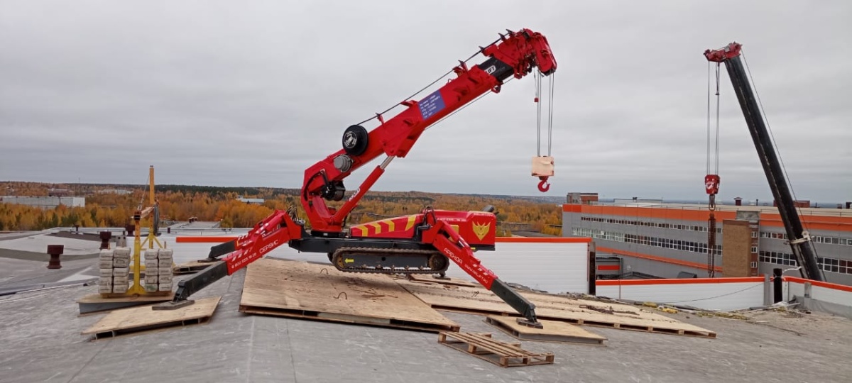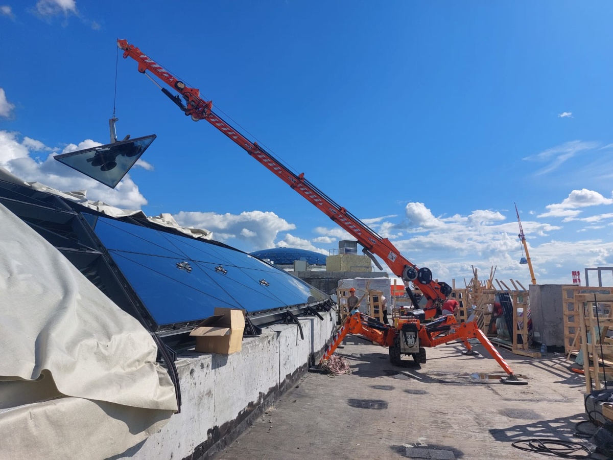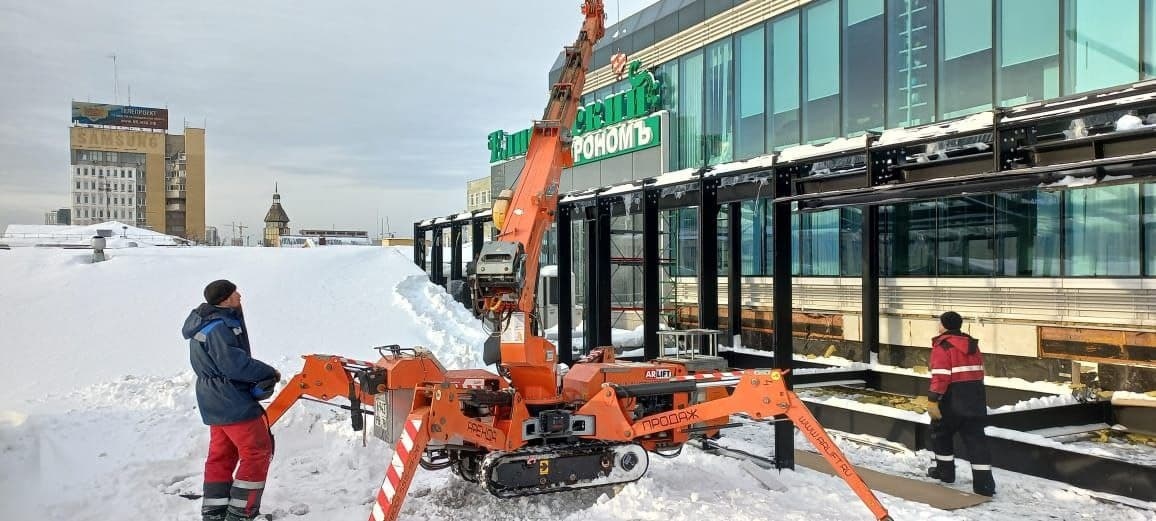 Монтаж зенитного фонаря с помощью мини-крана Арлифт
