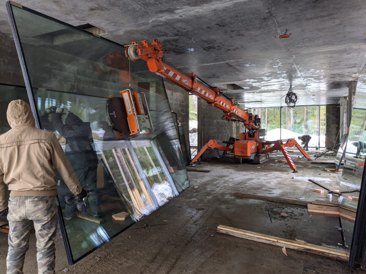 монтаж крупногабаритного стекла