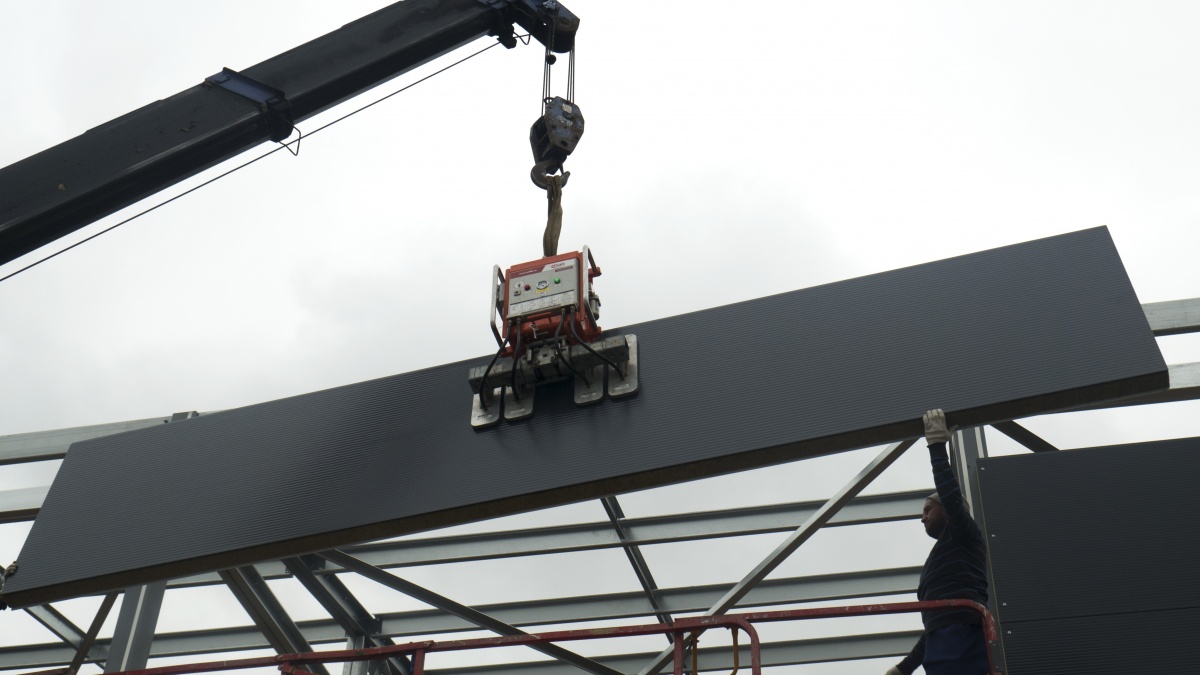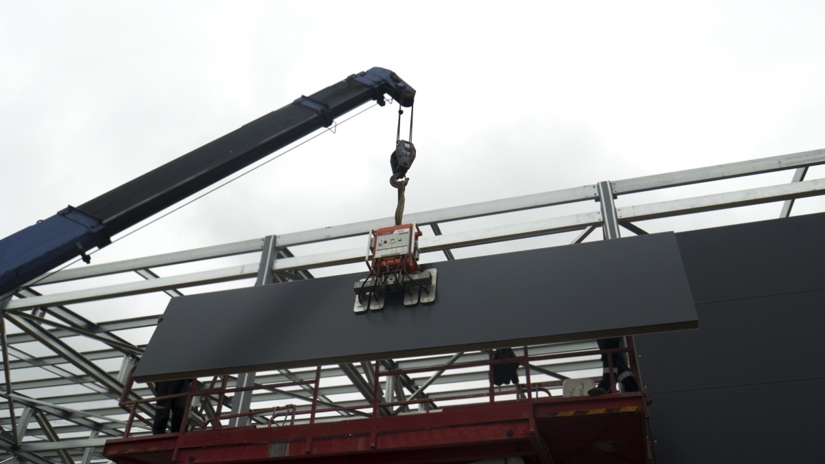 Монтаж на ограниченном пространстве с помощью вакуумного оборудования и мини-крана