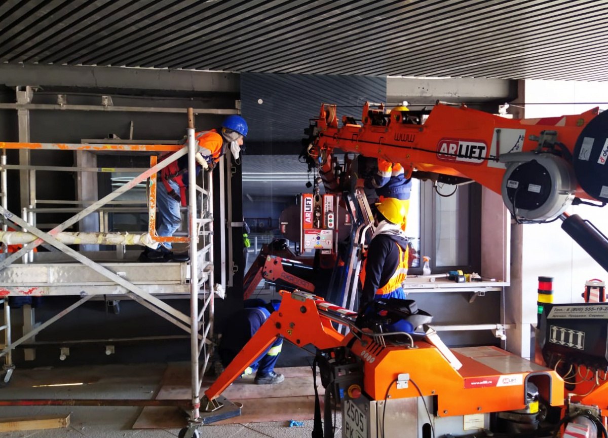 Монтаж стекла с помощью мини-крана и дополнительного оборудования MR800