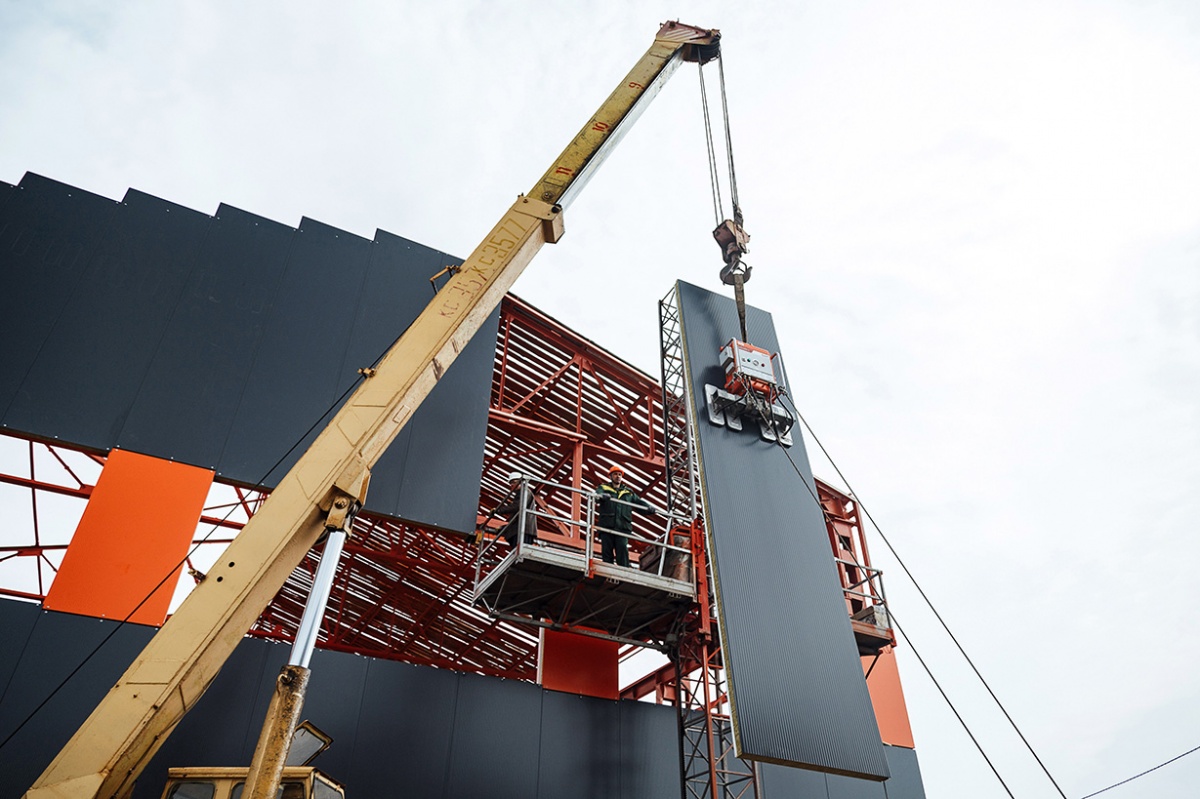 Компания АРЛИФТ. Вертикальный монтаж сэндвич-панелей