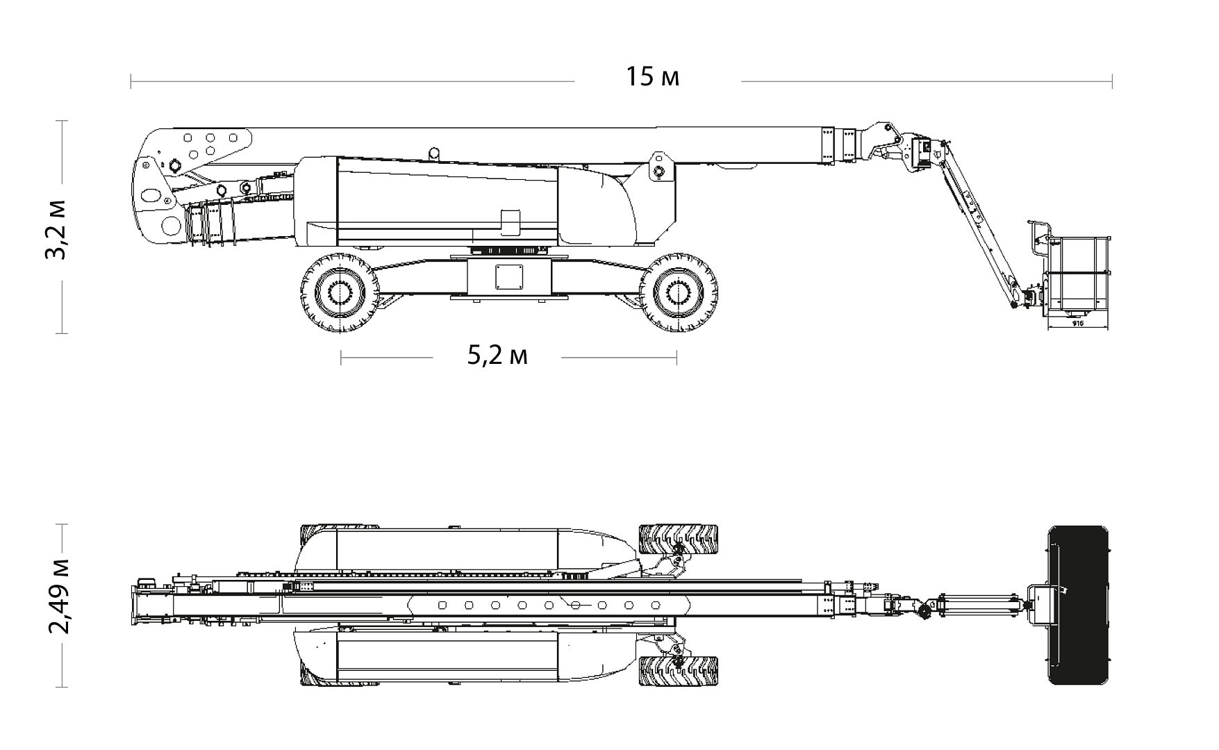 Рабочая высота подъемника 48.6 метров.