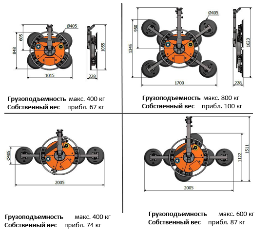 Оперативно и качественно вакуумный захват выполняет монтаж стекла весом от 400 до 800 килограммов. Вес монтируемого стекла зависит от количества присосок.